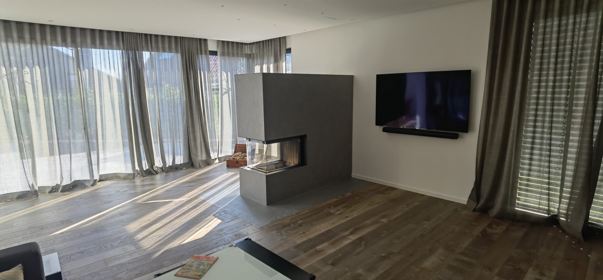 fugenloser Kamin im Wohnzimmer
